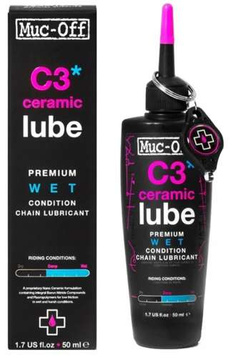 Muc-Off C3 Ceramic Lube to doskonały smar do łańcucha stworzony w oparciu o opatentowaną formułę zawierającą azotek boru, fluoropolimery oraz ceramiczne nano cząsteczki.